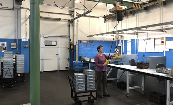In Verbindung mit dem Umbau der Warenausgangsprüfung wurde ein Schwenkkran der Firma SHT Suhler Hebezeugtechnik GmbH für das Behälterhandling in der Warenausgangsprüfung installiert. Mit dieser Hebevorrichtung können unsere Qualitätsfrauen zukünftig wesentlich rückenschonender die Behälter mit Drehteilen heben bzw. absetzen und mögliche Gesundheitsschäden vermieden werden.