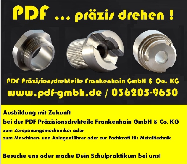 Gern haben wir die Einladung angenommen und werden zu der Veranstaltung unser Unternehmen sowie die angebotenen Ausbildungsberufe Zerspanungsmechaniker / Maschinen- und Ablageführer / Fachkraft für Metalltechnik vorstellen und jungen Menschen Perspektiven für ihre Zukunft aufzeigen.